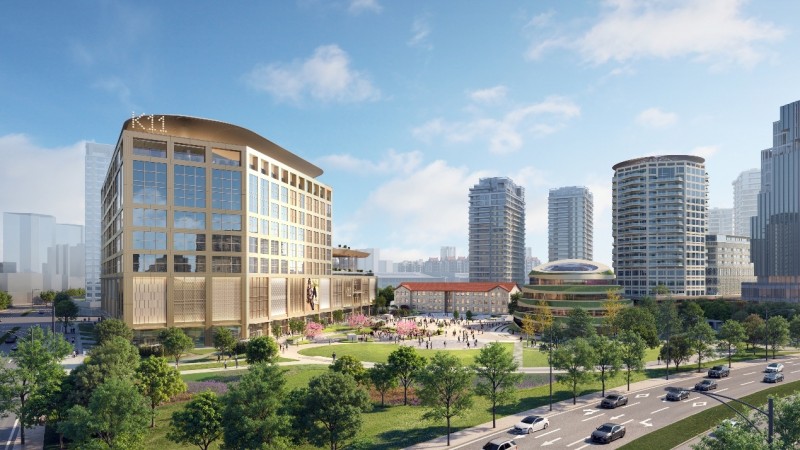 项目占地面积约11.6万平方米,总建筑面积约74万平方米,涵盖K11购物艺术中心、K11 ATELIER办公楼、高端酒店、服务式公寓及住宅等多元功能。其中,K11购物艺术中心建筑面积约8.5万平方米,分为地上九层与地下两层,建筑高度约60米;K11 ATELIER办公楼建筑面积约5万平方米,共19层,高约92米。除商业与办公功能外,区域内还涵盖了政府规划项目:文化中心及历史保护建筑,以开放空间丰富城市公共体验,延续区域人文底蕴。
